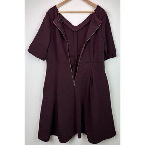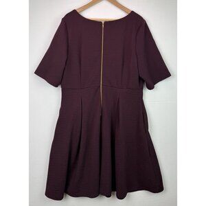 Lane Bryant Fit & Flare V-Neck Dress Knee Length Textured Pleats Purple Sz 18/20
