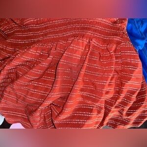 Burnt orange color with silver metallic thread stripes