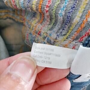 EUC - No flaws. Whiskering. Zipper-button closure. Classic 5-pockets. Raw hem/Fraying. Light distressing. Multi-colored stitching on watch pocket and across the back. Stretchy.