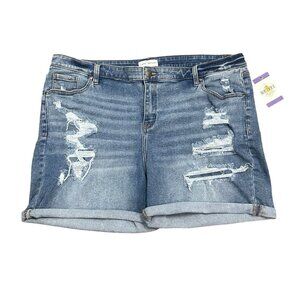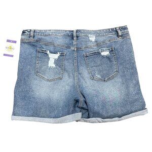 Step into laid-back style with these Lane Bryant women’s size 20 boyfriend midi denim shorts featuring a flattering mid-rise fit and Flex Magic waistband for extra comfort. Designed with signature fit tailoring, distressed details, and rolled cuffs, these shorts combine casual vibes with on-trend edge. The cotton-blend fabric offers softness with a hint of stretch for all-day wear.