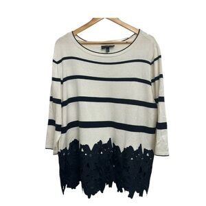Lane Bryant Floral Appliqué Lace Hem 3/4 Sleeve Navy Stripe White Sweater 18/20