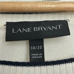 Lane Bryant Floral Appliqué Lace Hem 3/4 Sleeve Navy Stripe White Sweater Size 18/20