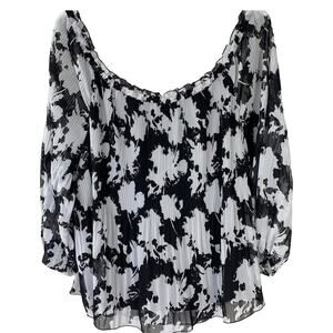 Lane Bryant Floral Chiffon Off the Shoulder Tops Plus Size 26/28 Pleated Blouse