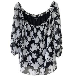 Lane Bryant Floral Pleated Chiffon Off the Shoulder Tops Blouse