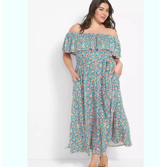 Lane Bryant Floral Convertible Off-The-Shoulder Maxi Dres Multicolor 14/16