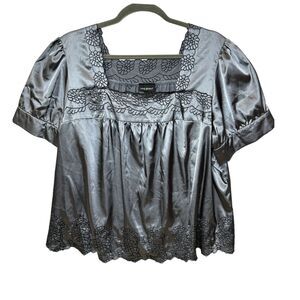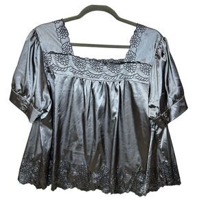 Lane Bryant Floral Embroidered S/S Square Neck Top Gray Women's 26/28
