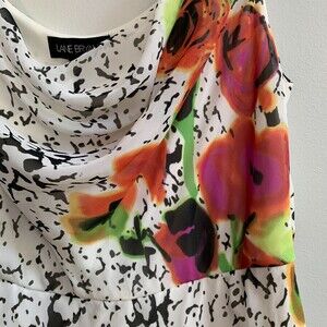 Lane Bryant Floral Fit Flare Cowl Neck Dress Sz16 White Sleeveless Artsy Roses.