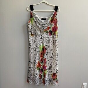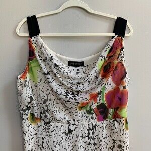 Lane Bryant Floral Fit Flare Cowl Neck Dress Sz16 White Sleeveless Artsy Roses
