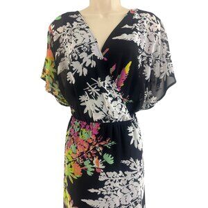 Lane Bryant Floral Print Chiffon Long Gown Maxi Dress Size 22/24 3X Plus Dolman