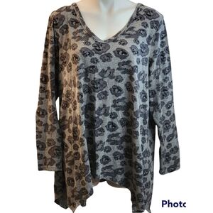 Lane Bryant Floral Sharkbite vneck top Gray Size 18/20