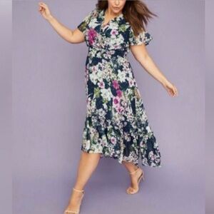 Lane Bryant Floral Short Sleeve Blue High Low Size 18/20