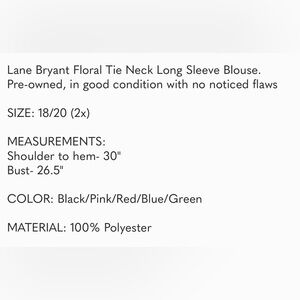 Lane Bryant Floral Tie Neck Blouse Sz 18/20 Plus size