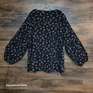Lane Bryant Floral Tunic Top 26 Balloon Sleeve V Neck Ethereal Cottagecore