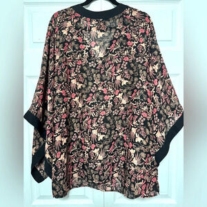 Elegant floral V-neck top with a blend of pink and black hues. Perfect for a stylish and comfortable look. Excellent pre-loved condition non-smoking home.
