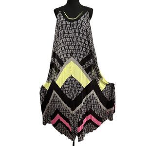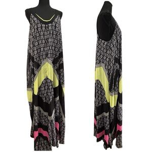 Lane Bryant Flowy Maxi Dress Plus Size Black Yellow Lined Semi Sheer