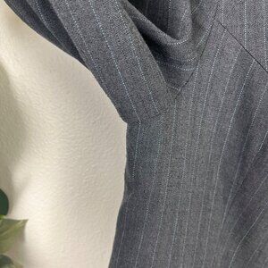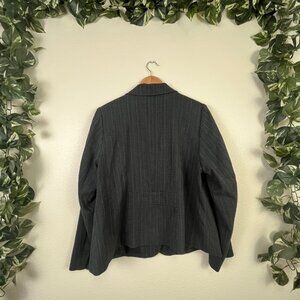 Women’s casual long sleeve blazer from Lane Bryant! Great to pair with any outfit or work. Striped pattern, front button, minimal wear under arms, good used condition! *light black, dark grey, blue