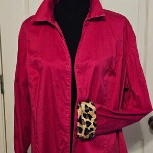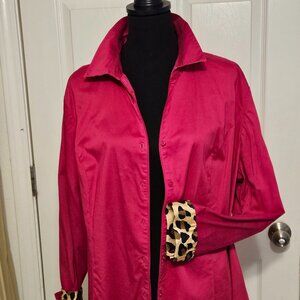 Super cute, Lane Bryant Top in an amazing Fuchsia color with accents of Animal Print on the cuffs and back of the collar. Oversized top, great for a minimalistic look. LIKE NEW condition, wore it maybe once before I lost weight.