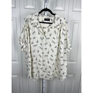 Lane Bryant Gauzy Boxy Pop Over Novelty Cheetah Cat Print Cream Blouse Top 26