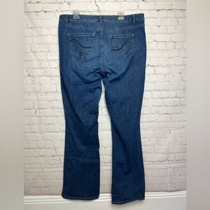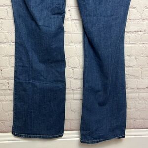 A high-rise bootcut jean with the most stretch and recovery we offer for a super-comfy fit. Medium wash with slight whiskering. Belt loops. Five pockets. Button & zip fly closure.