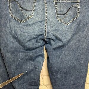 These jeans are in excellent condition aside from one small flaw. There is an imperfection as indicated in photos 7 and 8. I tried to get a photo of the imperfection from farther away to as to make the location more clear, and up close to show exactly what I'm referring to.