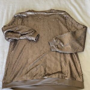 Elegant gold top with shimmering sequins. Features long sleeves for a stylish look.