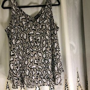 Lane Bryant Black & Gray Animal Print Double Layer Chiffon Swing Tank Size 14.