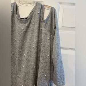 Lane Bryant Gray Cold Shoulder Sweater with Pearl Details Size 18/20 NWT