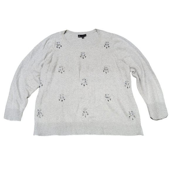 Lane Bryant Gray Crewneck Chandelier Crystal Embellished Sweater 26/28