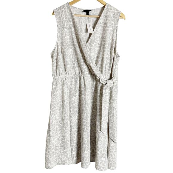 Lane Bryant Gray White Floral Print Sleeveless Wrap Dress Plus Size 20