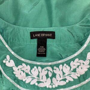 Lane Bryant Green Embroidered Peasant Blouse Button Balloon Sleeve 14/16