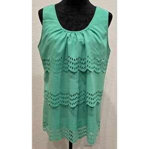 Lane Bryant Green Eyelet Tiered Tunic Top - Size 14 - Stylish & Versatile!