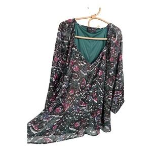 Lane Bryant Green Metallic V Neck Billowy Sleeve Womens Size 22