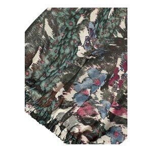 • Print: Abstract paisley floral pattern in jewel tones (burgundy, teal, black, white, and hints of purple)