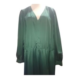 Lane Bryant Green satin v neck tiered maxi Dress long Sleeves 24 nwt no belt