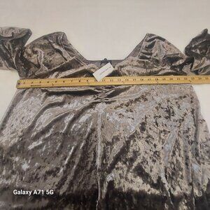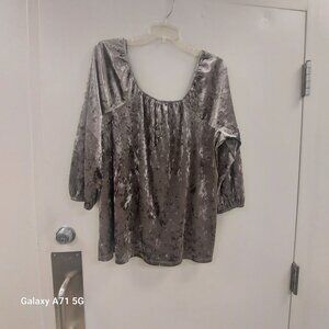 Lane Bryant Grey Crushed Velvet Sweat heart Neck Blouse 3/4 Sleeve Elastic Cuff