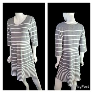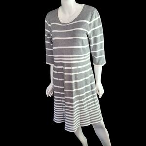 Lane Bryant Grey and White Striped Womens Sweater Dress Mid Sleeve Size 18/20