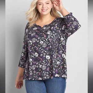 Lane Bryant Henley Fit & Flare Tee 3/4 Length Sleeves Size 14/16