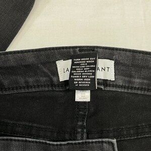 Hi Rise Stretch Straight Leg Denim Jeans from Lane Bryant. Gently worn – look in excellent condition. Midweight cotton blend with straight silhouette in lightly faded black denim wash. Fitted at hip and thigh then straight to the hem. Manufactured whiskering and fading on front and seat. Belt-loop waistband with button and zip fastening. Classic back yoke, 5 pocket design and double stitched seams. Note: Some photos edited to enhance details - jeans are lightly faded black. A versatile wardrobe essential, perfect for casual days, work outfits, or a polished evening look.