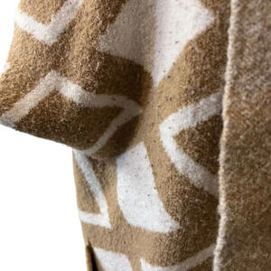 This Lane Bryant hooded cardigan sweater is perfect for a casual fall occasion. The geometric pattern in tan and white adds a touch of elegance to the tight-knit nylon, spandex, and acrylic blend fabric. The short sleeves and open style make it comfortable and easy to wear, while the stretch feature adds to the comfort. It is machine washable and fits regular with a plus size of 18. The sweater has a regular fit and is not personalized or vintage. It is made in China and is suitable for women.