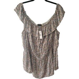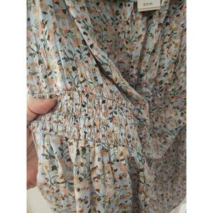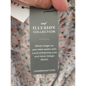 Lane Bryant Illusion Top Blouse Smocking 22 Floral Ruffle Stretch New
