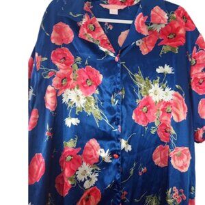 Lane Bryant Intimates Womens Button Front Nightgown Blue Floral Satin Plus 18/20