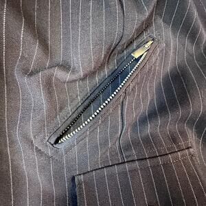 Lane Bryant Jacket Womens 14 Navy Blue Striped Moto Zip Up Ruffled Peplum Blazer