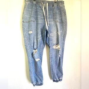 Lane Bryant Jean Joggers Signature Fit Mid Rise Boyfriend Drawstring, Size 14