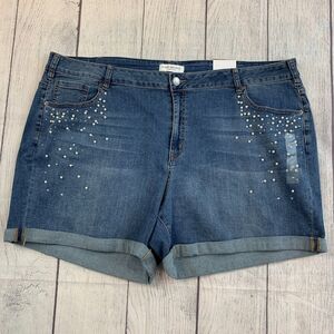 Lane Bryant Jean Shorts 28 Plus Mid Rise Girlfriend Inseam 5 Embellished New NWT
