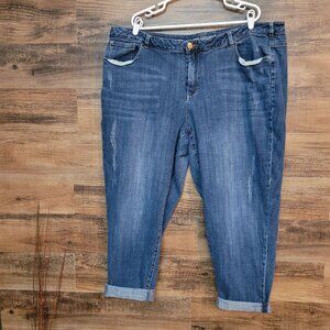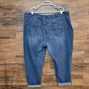 Lane Bryant Jeans Plus Size 26 Boyfriend Capri High Rise Ripped Medium Dark Wash