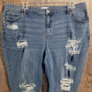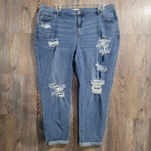 Lane Bryant Jeans Signature Fit Boyfriend Size 20x27 Distress Black Plaid Lining