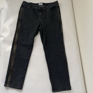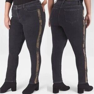 Lane Bryant Signature Mid Rise Gold Foil Side Stripe Slim Straight Jean