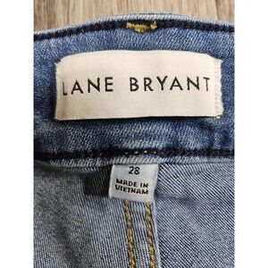 Branding: Lane Bryant woven label; button stamped "LANE BRYANT DENIM"