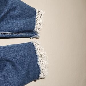 Lane Bryant jeans size 26 girlfriend crop Distressed distroyed cut out pants lace crochet has distoyed elements and holes in legs destroyed