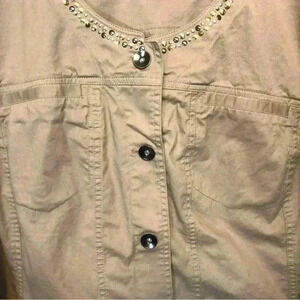 Lane Bryant Khaki Twill Jacket Size 28 Gold Silver Studs Button Front